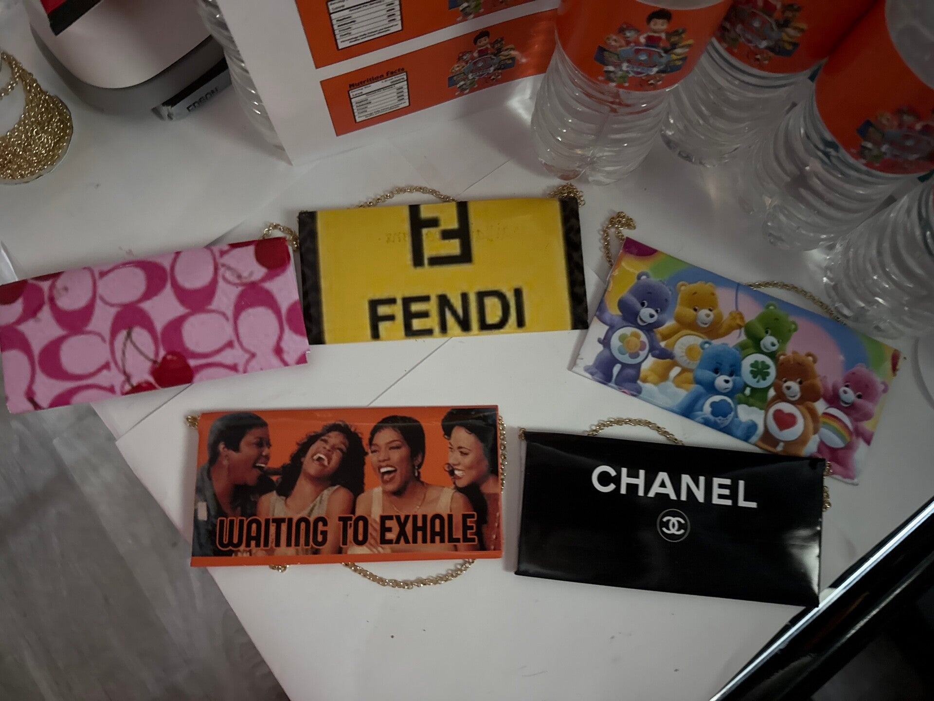 At Kaylaipartypalace we offer a wide variety of party favors including chip bags, chocolate bars, and purses. Whatever you need, we can create! If you want to see our party favors in person, contact us to book an appointment!